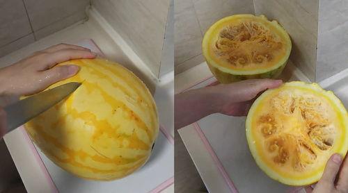 2. 侧面特写:将手机贴近瓜果,捕捉瓜果的细节,比如瓜皮上的纹理、瓜肉的颜色,让画面更有层次感。